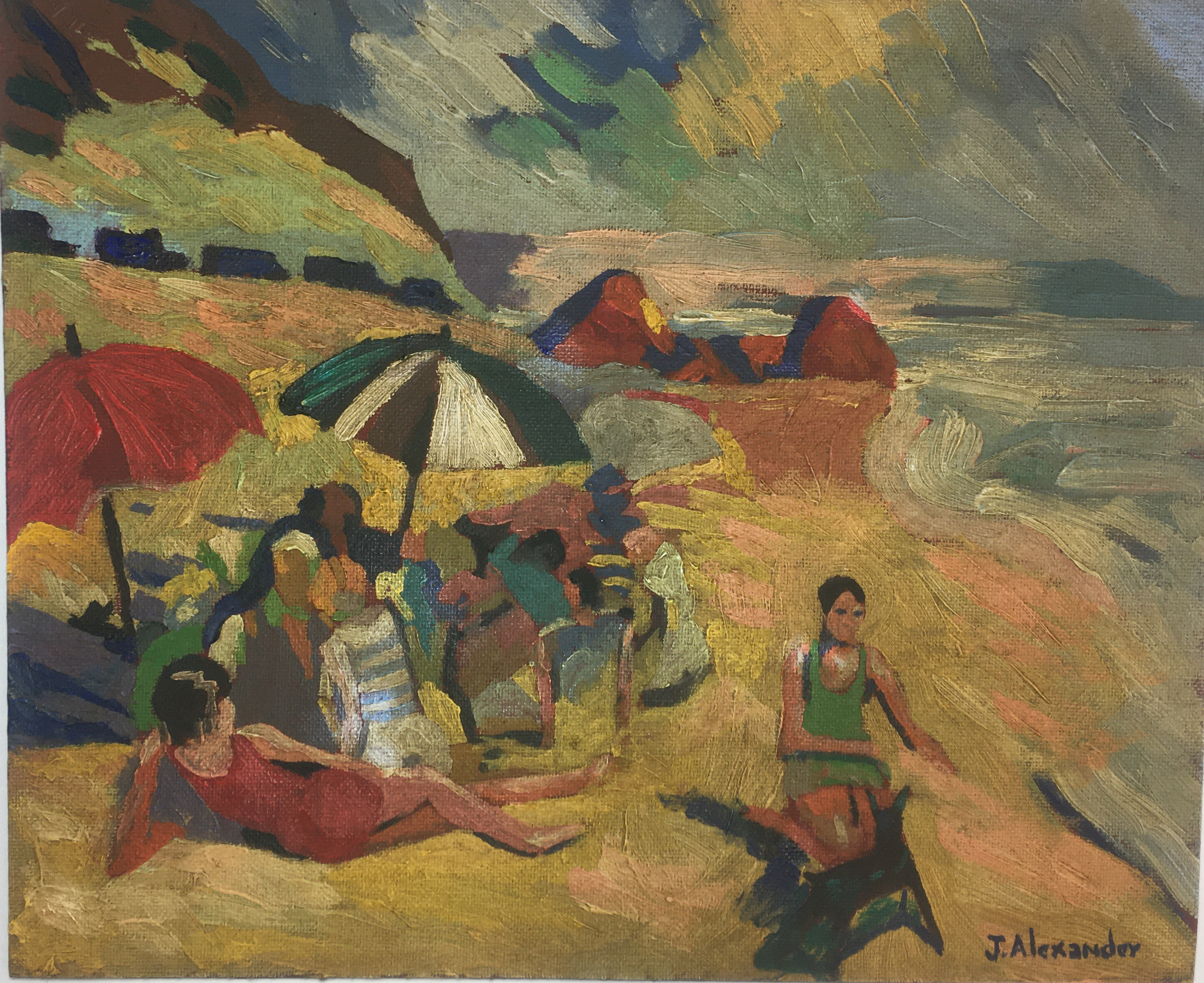 This lovely little beach scene was covered with grime and cigarette smoke staining and after three cleans for the three layers of dirt, it came up rather well!! I will post more before and afters soon.
