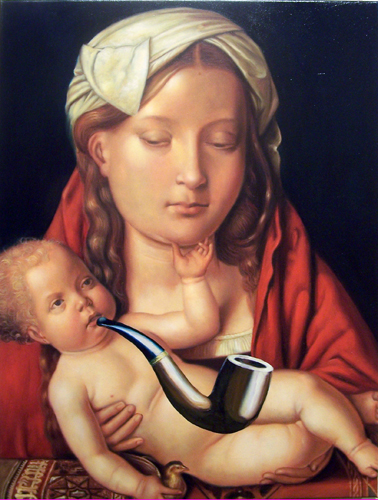 Madonna and Child with a Pipe ( after Michiel Sittow and René Magritte) , 2010, oil on canvas, 50.8 x 68.6 cm