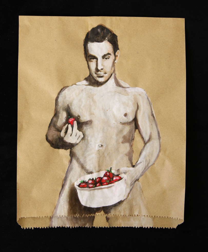 Cash Brown_Fruit Salad_laser print, gouache, ink on brown paper lunch bag_245 x 202 mm_2013