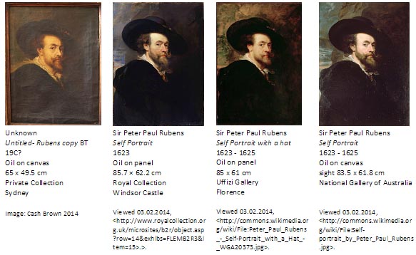 Untitled – Rubens copy lacks the finesse, handling, subtleties, blending and impasto of the original paintings by the old master (Huyghe 1964, p. 241, Luxford 2008, p. 226). The version currently hanging in the Art Gallery of New South Wales (on permanent loan from the National Gallery of Australia) was viewed in January 2014, while the custodian of Untitled – Rubens copy viewed the Uffizi version in February 2014. The custodian agreed that the authenticity of the work was not in question, and that authorship would be near impossible to ascertain.